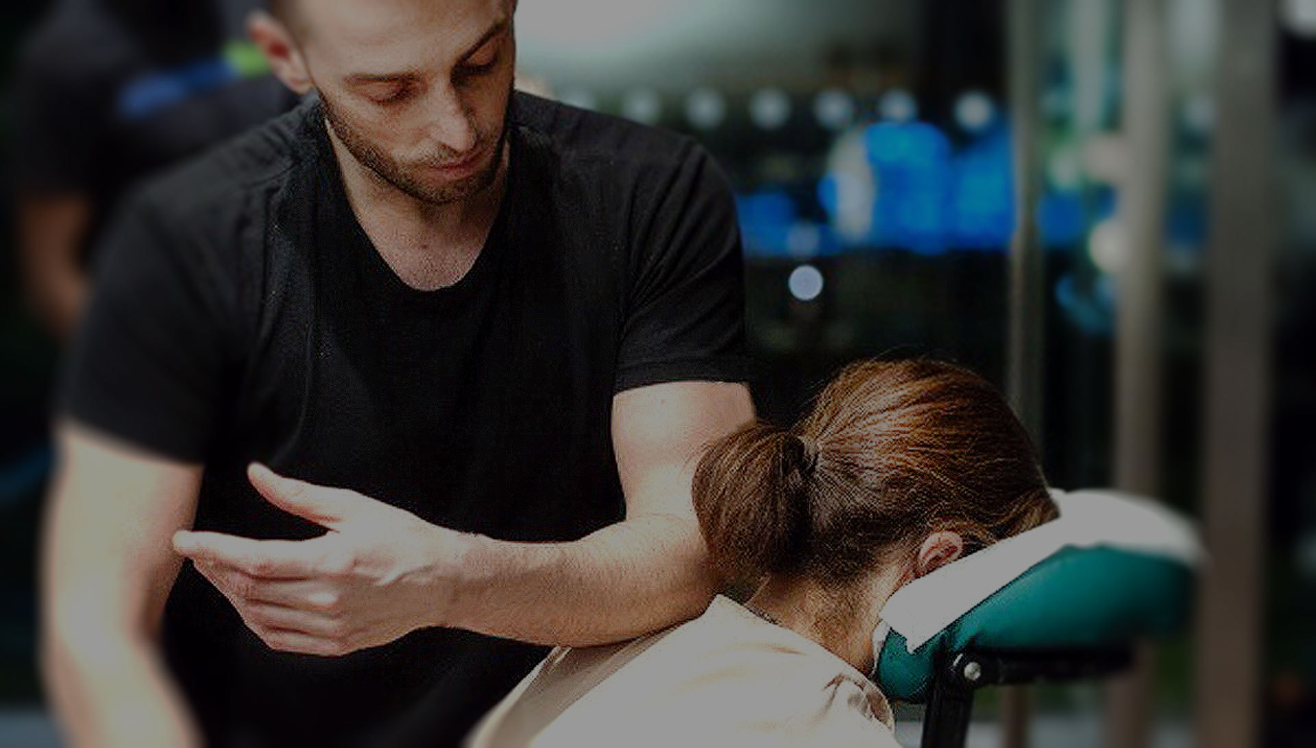 Bij deze massage worden rug, schouders, armen, handen, heupen en hoofd gemasseerd. De massage vindt plaats over de kleren heen, en kan in principe overal gedaan worden waar een massagestoel kan staan. Een rustig hoekje van 4 m2 is al gauw genoeg.